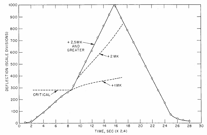 By the time the first bank of rods was raised, due to the absence of some control rods and reduced coolant flow, the reactor became prompt critical, where power surged to about 60 – 90 MW, far above its design level of ~30MW. This took a few seconds to be obvious, as there were no alarms.